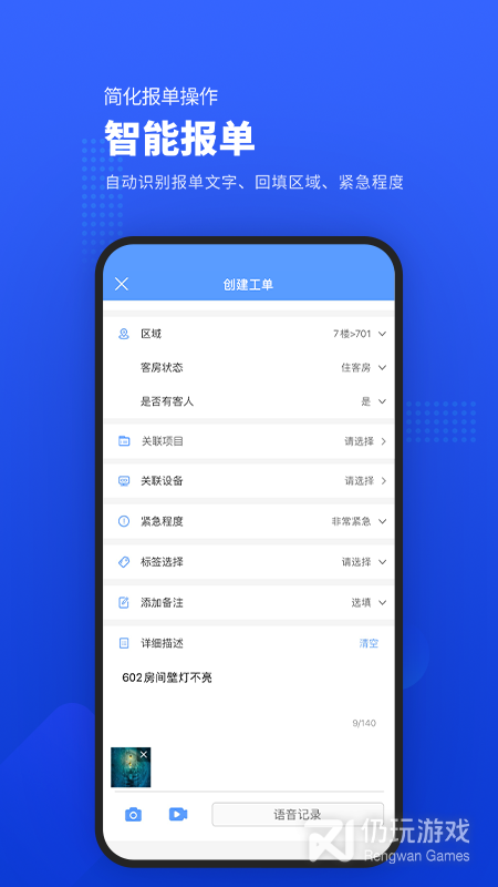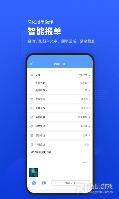1、用户可以使用它进行快速的维修申请上报,解决工程维系问题,其功能强大多样、应用范围广、操作简单、消耗成本低、使用便捷等