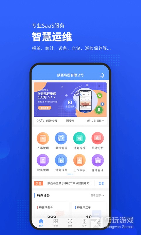 这是一款用于解决企业的项目/系统/设备设施保养、维修、修缮事宜的云服务管理软件。
