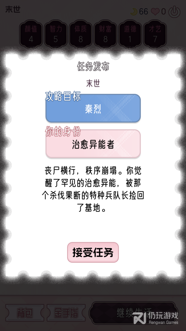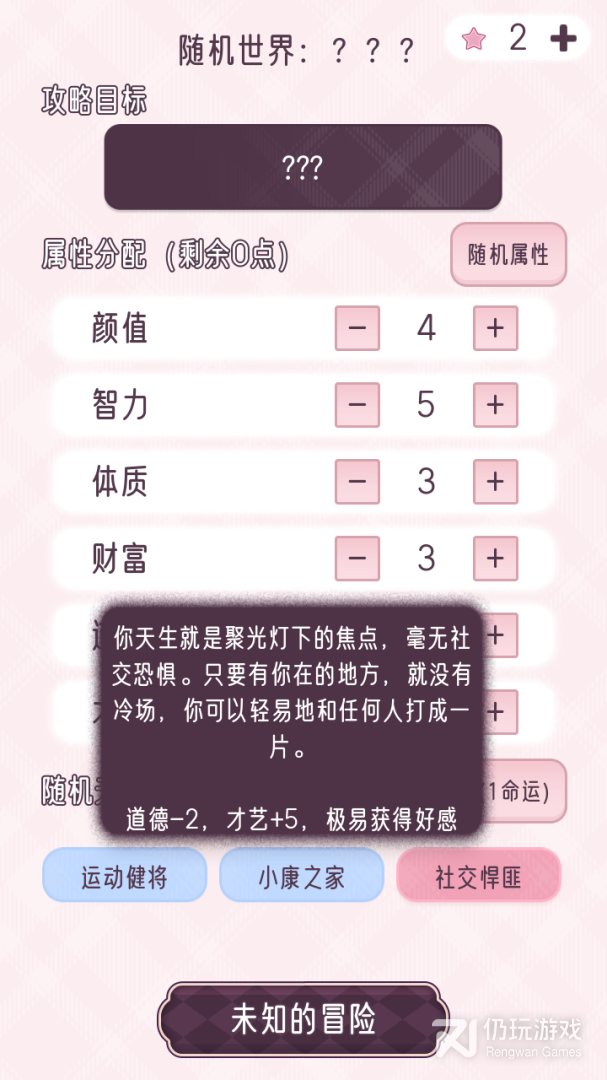2、世界背景、齐之子、属性、天赋和性格都是随机生成的