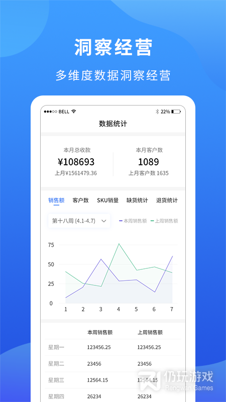 4、数据显示:各种相关数据实时同步更新显示,例如,每日收入带来的数据非常直观,也会有清晰的图表显示