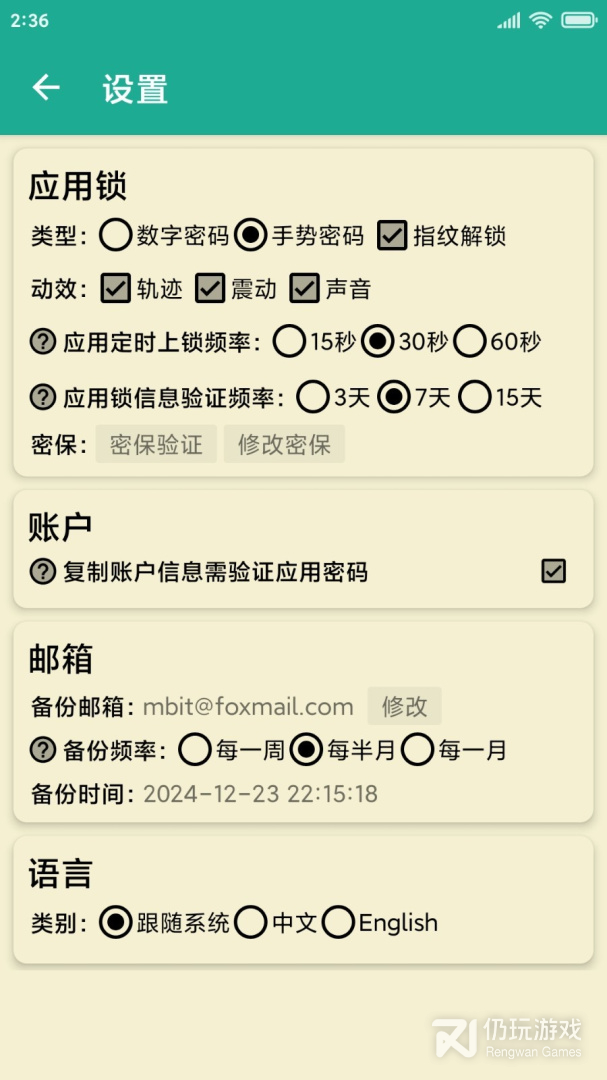 1、定时上锁,当开启软件之后,若未主动退出应用,会在一定时间内自动上锁,减少账号数据泄露的风险。