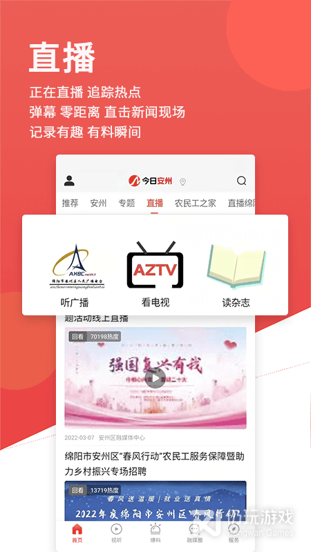 3、这款资讯阅读软件上的新闻动态都是当天更新的,小伙伴们在这里可以享受到丰富知识的海洋。同时这款今日安州帮助用户阅读到绵阳市全区的新闻头条,它为您呈现很多精彩的直播视频,完成的栏目任您选择观看