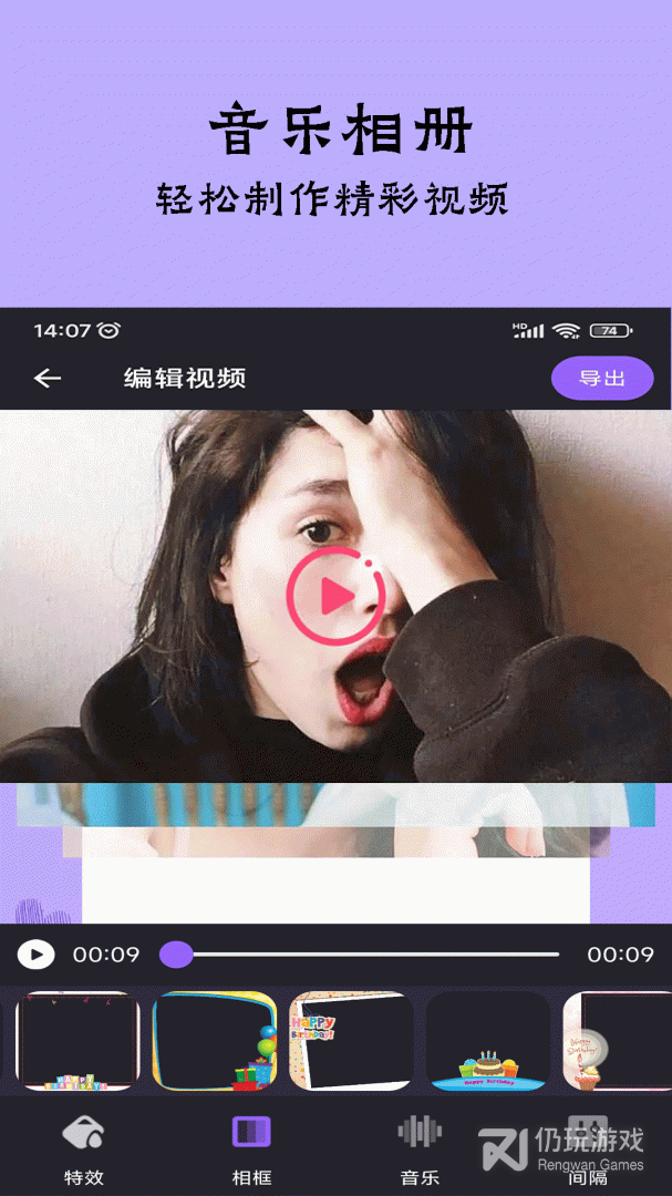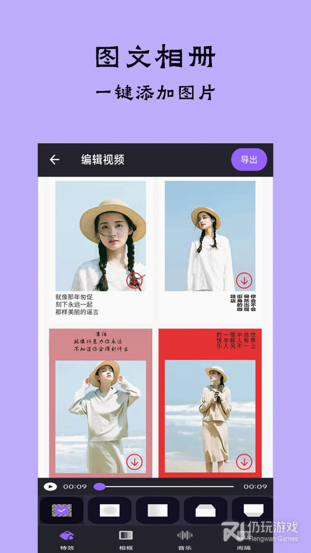 1、提供多种编辑功能,包括滤镜、文字、音效等,能轻松打造音乐相册;