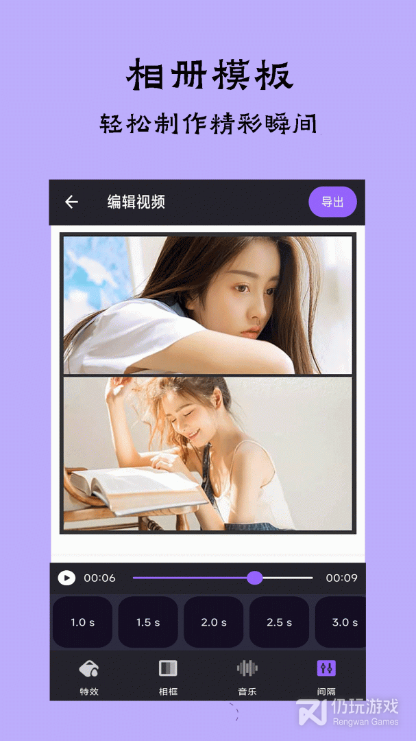 6、多媒体支持:支持使用音乐、视频和图片来展示您的相册的应用。