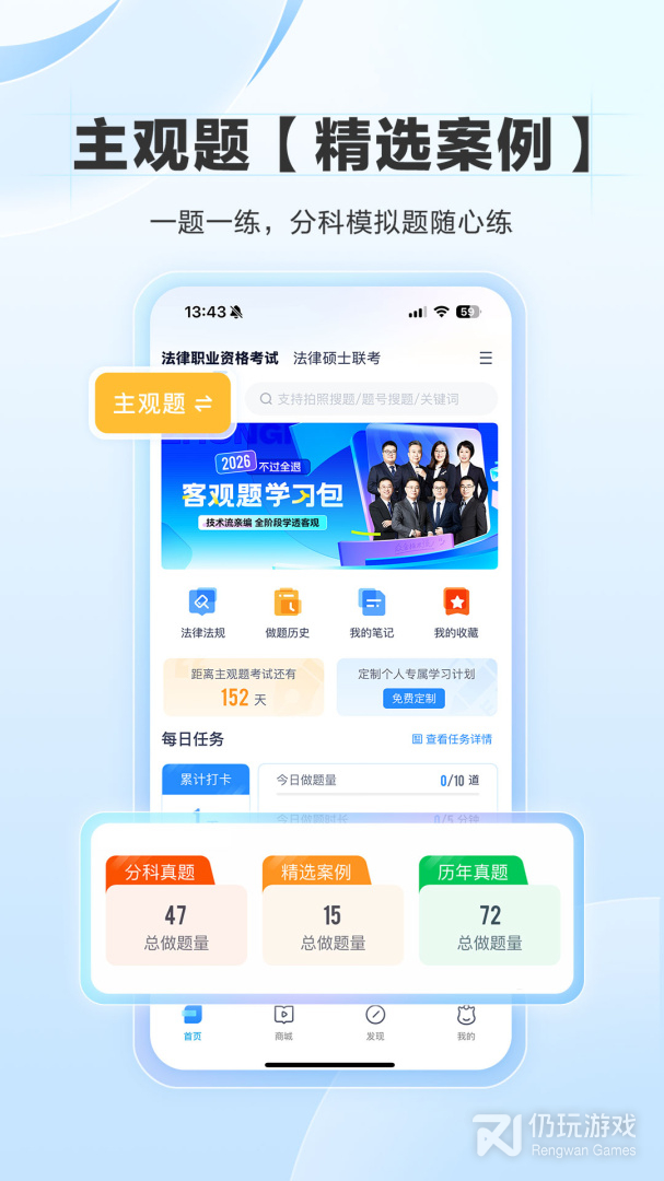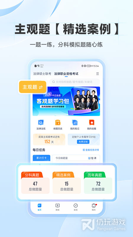 法考法硕两种学习模式随心切换,卡片式布局,主客观练习专区,开启备考新体验