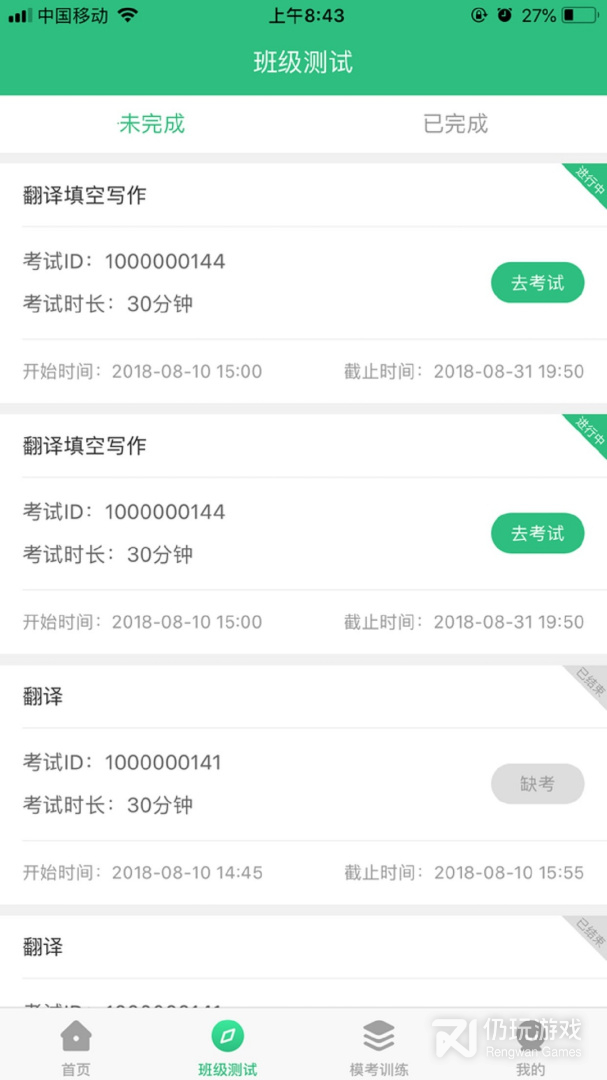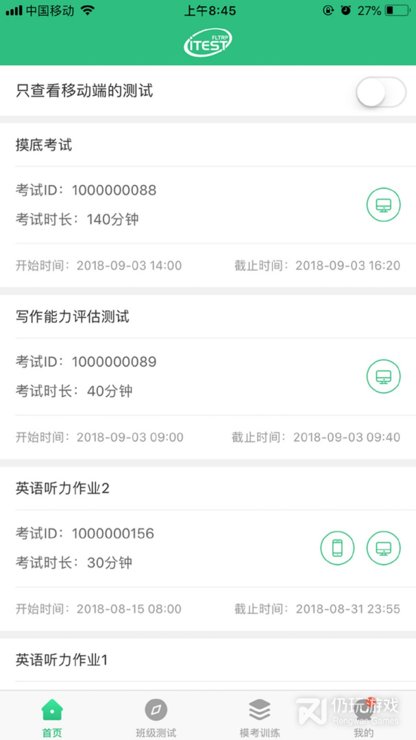4、完成老师发布在移动端的班级作业和测验,自主进行模考训练