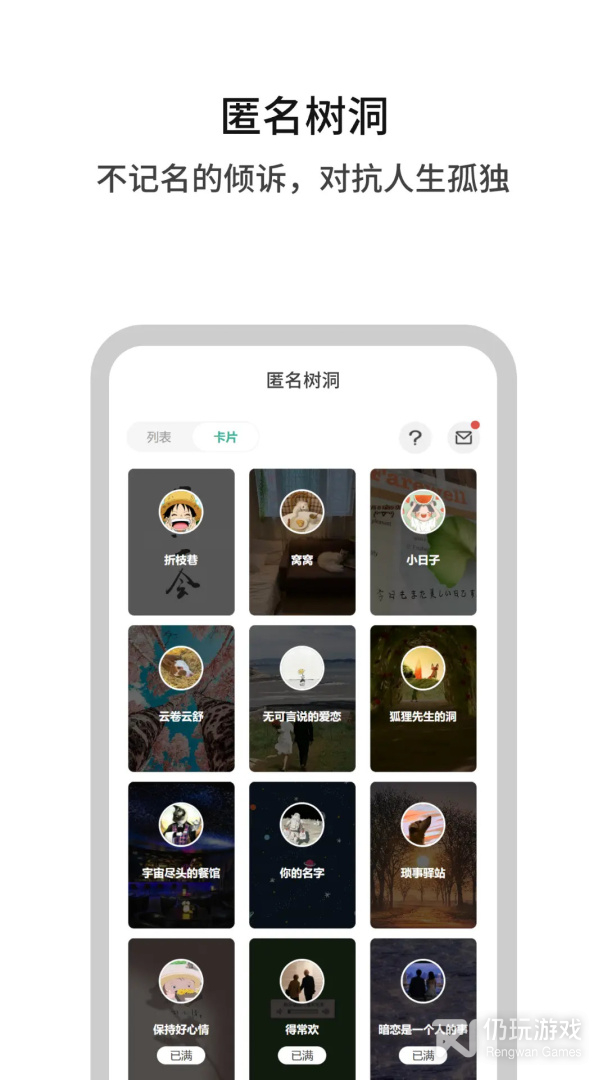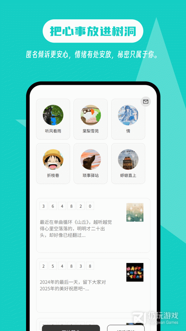 1、在我们的软件中有独特的树洞功能,大家可以在这个树洞中去倾诉自己的心情。