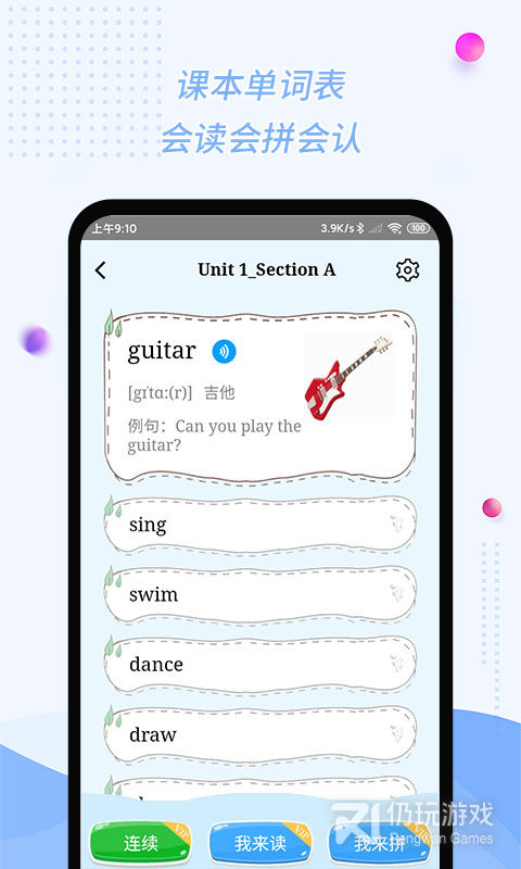 【单词卡片】:涵盖所有小学单词,提供我来读、我来拼,听说读写全方位学习单词;