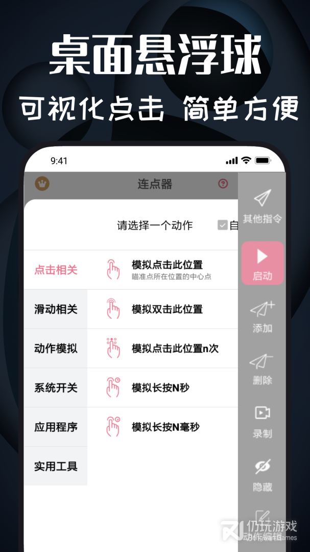 自动连点器,比手点击快十倍!万能点击器是一款实现模拟点击的安卓手机自动点击器也叫手机屏幕自动连点器,它可以替代双手,辅助你在手机屏幕桌面点击,可以1秒实现200次点击。实现类似脚本精灵、自动接听、自动抢单、自动刷新、自动按键、自动点赞、自动精灵、自动键盘、自动加好友、电击器等功能。