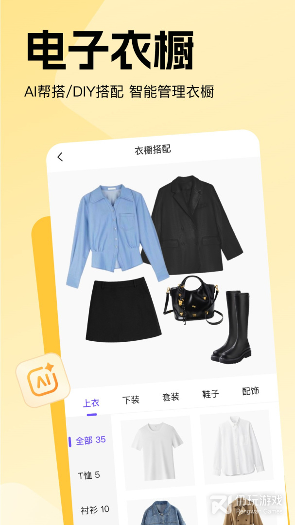 2.衣橱搭配:支持DIY手动自由搭配,随心组合打造个性造型;也可吏用智能帮搭,一键生成高效穿搭方案,让日常穿搭更省心,更出彩。
