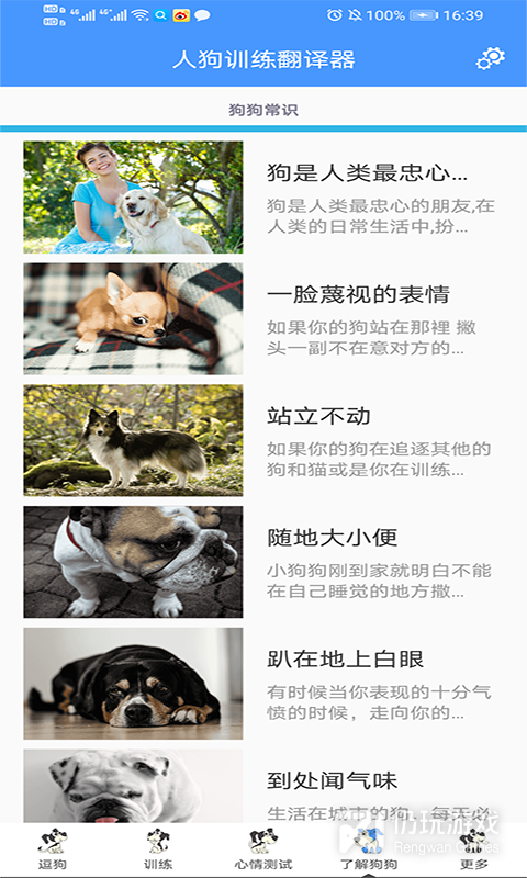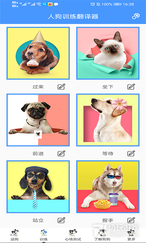 2、软件拥有逗狗,训练,心情测试,了解狗狗等诸多功能,可以帮助用户更好的获知狗狗的表达,更好人狗和谐相处