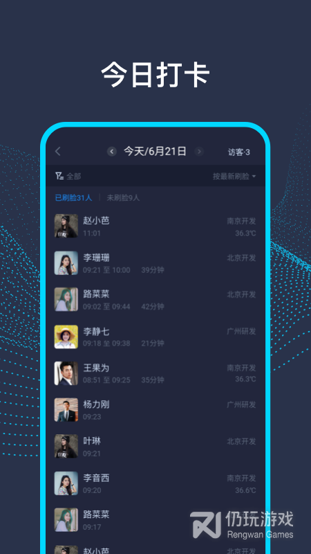 5、所有员工的考勤状态都可以通过手机查看,管理更简单,可以由不同的员工单独管理