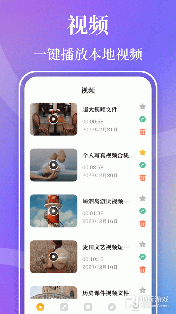 1、帮助用户管理手机本地视频,管理视频将非常轻松