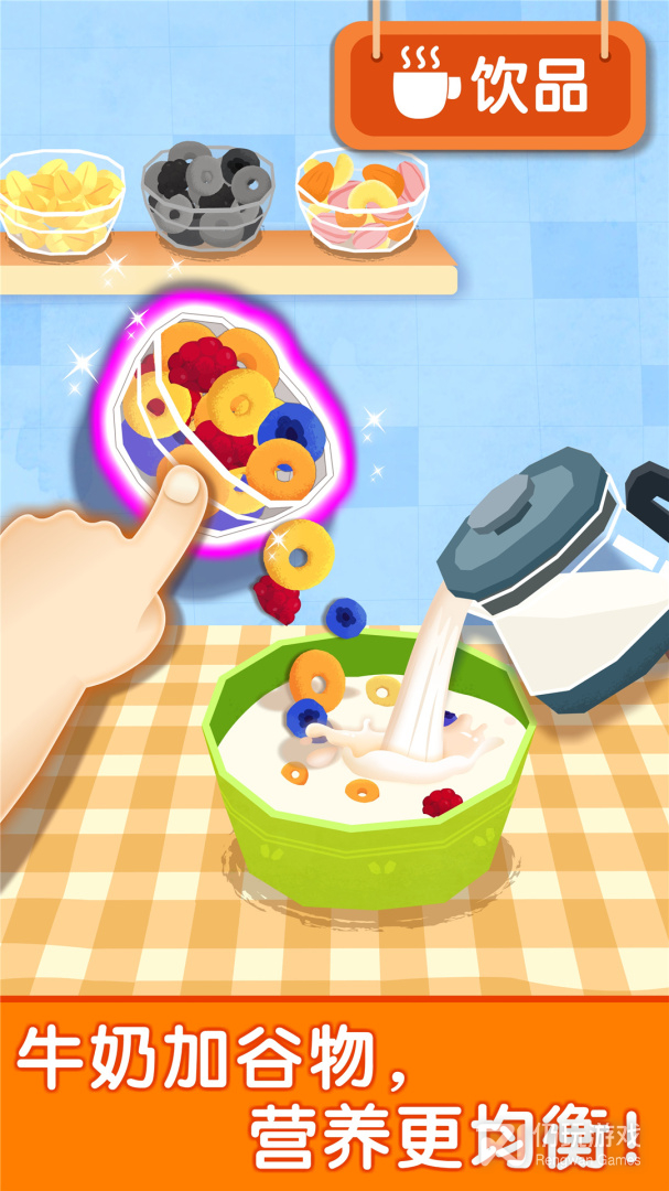 2、这款游戏整体玩下来非常适合家里的小孩子使用,小孩子每天早上醒来都会玩这款游戏,从中知晓了许多做早饭的知识,耐玩性也非常的高,游戏中的背景音乐和画面相结合,让这款游戏更加的生动有趣,不要再犹豫了,与宝宝一起玩吧