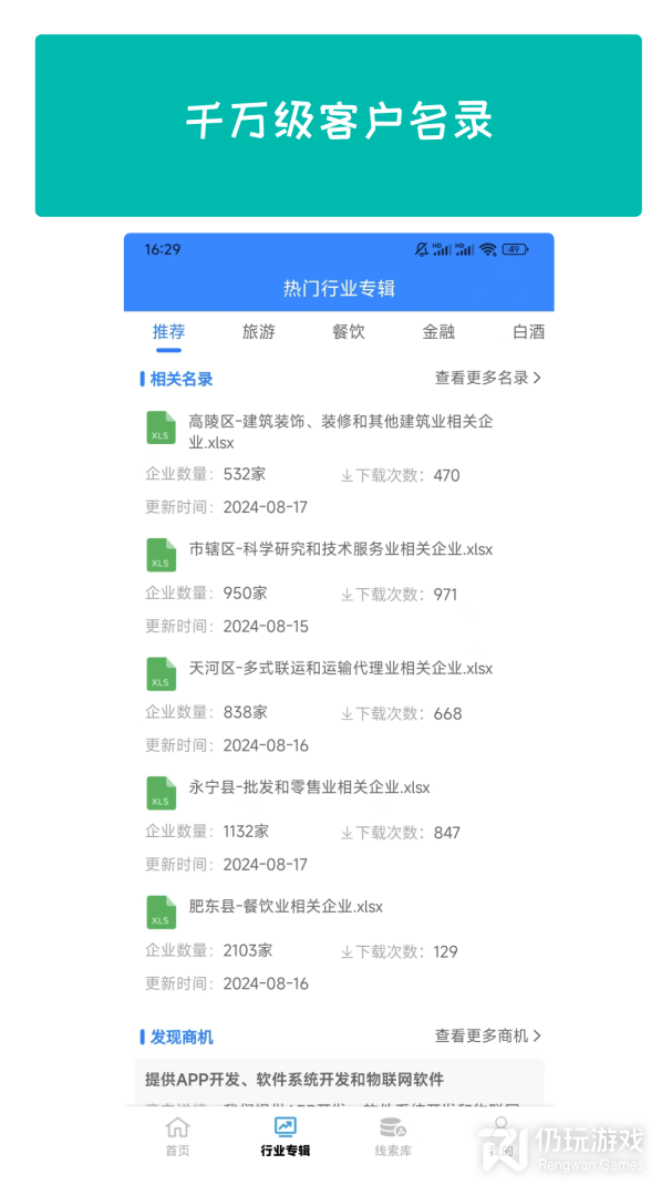 2、整理各行业客户名录,提供高速下载通道