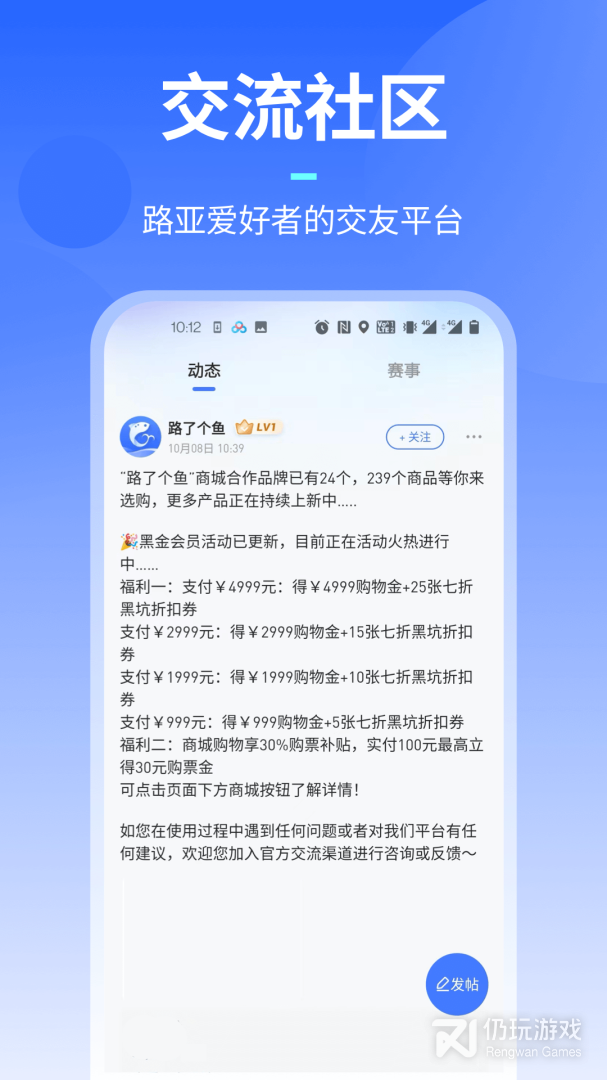 1)鱼友排行榜和积分榜建立用户荣誉和声誉体系,让用户闻名于路亚钓界。