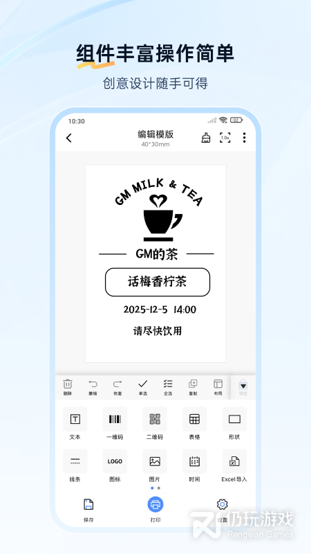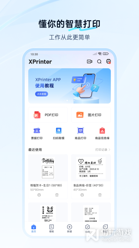 2、该软件为用户提供了非常实用的打印功能,并且还支持蓝牙、USB、Wi-Fi三种常见的连接方式,以及还有着超多优质的行业模板,通过该软件大家可以轻松自由的进行打印,以及能够对打印的内容进行编辑,非常的好用