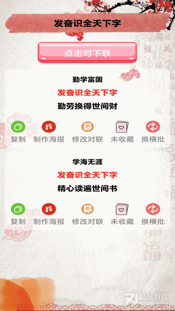 5、一键收藏,您可以收集并保存自己喜欢的对联