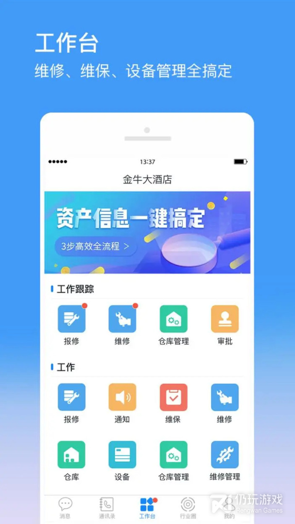 金牛运维是专为酒店企业定制打造的一款集工作沟通、维修、维保、仓库管理、组织管理于一体的设备运维方案;金牛运维致力于提升企业设备运维效率、实现无纸化工作协同、降低企业人力成本。