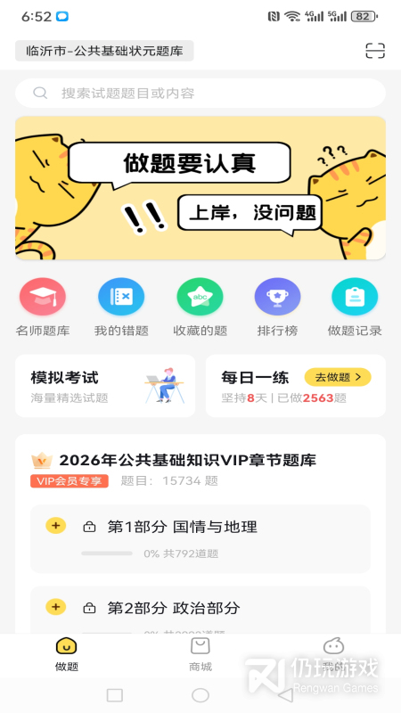 3、公共基础状元题库app,教师编、事业单位考试首选的刷题软件,它拥有丰富的练习题,包括模拟试题和历年真题,其中模拟试题有普通模式和背题模式,普通模式就是普通的做题刷题,背题模式是将高频题背下来,比如一些古诗词、常识之类的题目,这些都是知识点,都是需要牢记于心的
