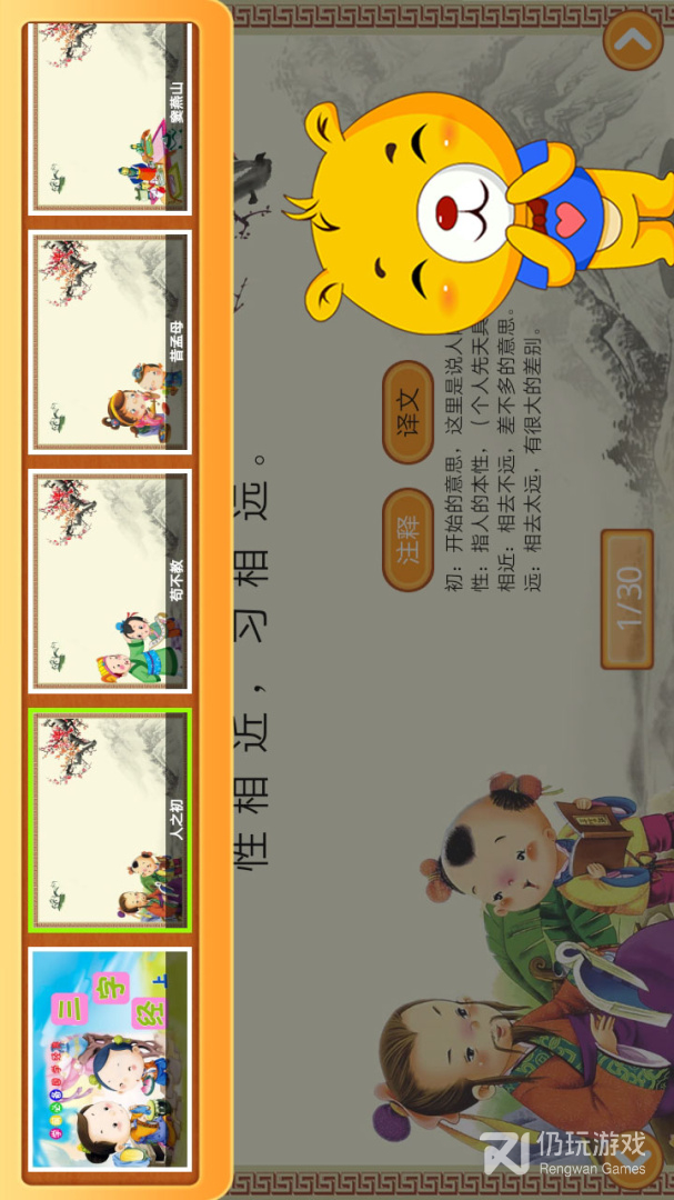 2、用生动的动画,富有感情的朗读,为孩子讲述三字经的故事,还有非常详细的解析,让孩子感受国学的熏陶。软件内的字都有准确的拼音,让孩子在观看的同时还能学到更多的汉字