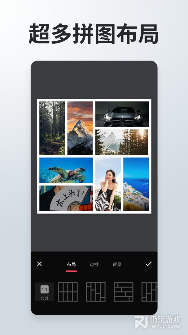 2、照片拼接P图编辑,手机专业拼图工具,提供丰富素材,滤镜、贴纸、模板等应有尽有,帮助用户轻松编辑图片,美化手机照片,轻松获得精美照片