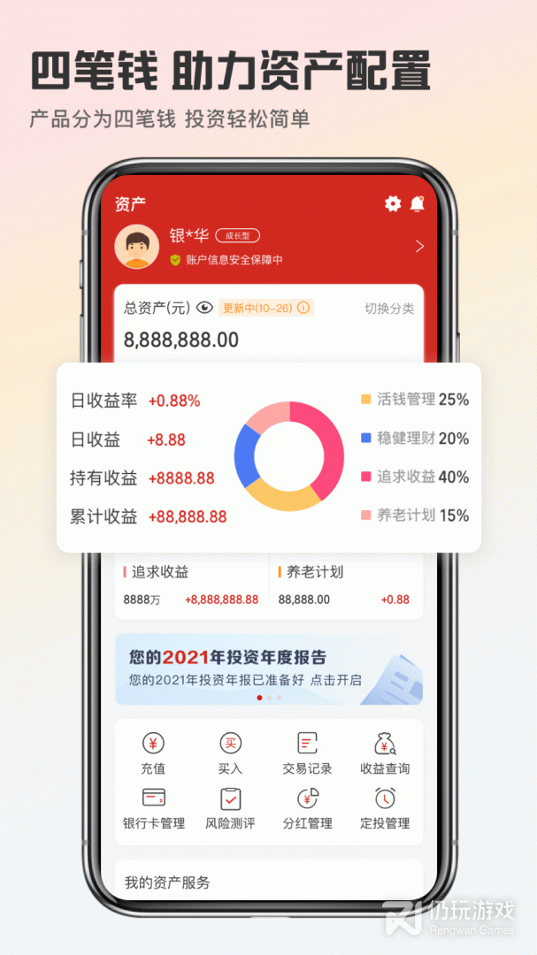 3、银华生利宝app独有的生利宝产品具有高收益低风险的特性,在手机上就能轻松进行投资,同时银华生利宝app支持银华旗下各项基金移动服务,是您投资理财的好帮手