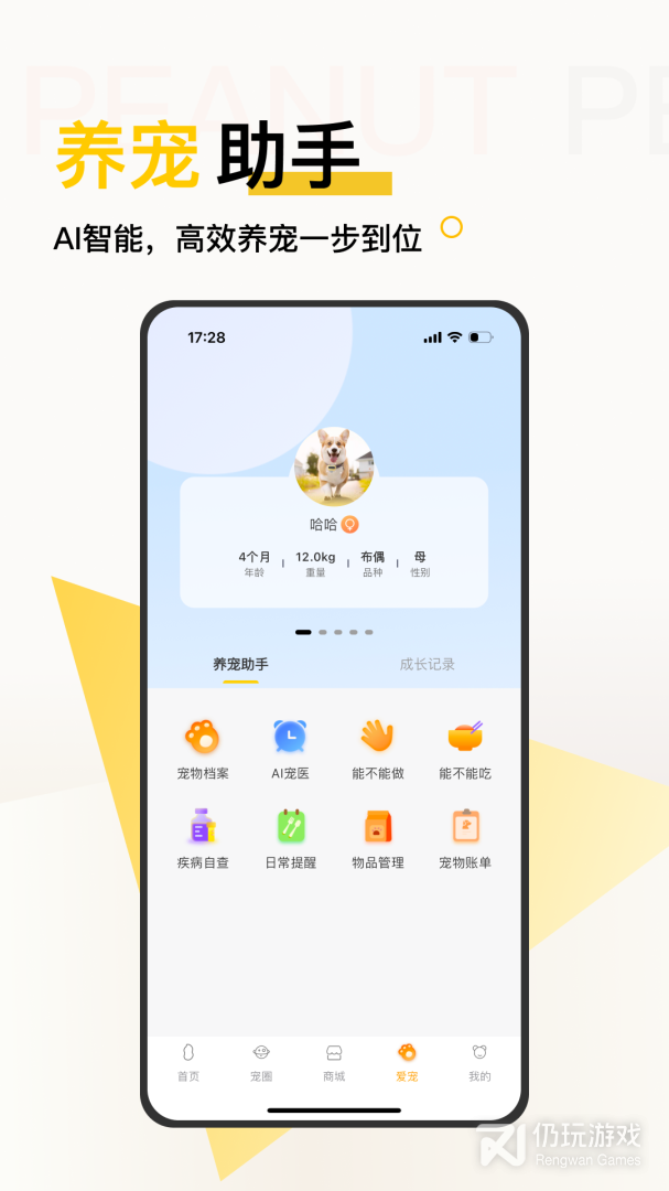 1、花生宠物是专为爱宠人士,养宠家庭开发的一款宠物社区商城APP;