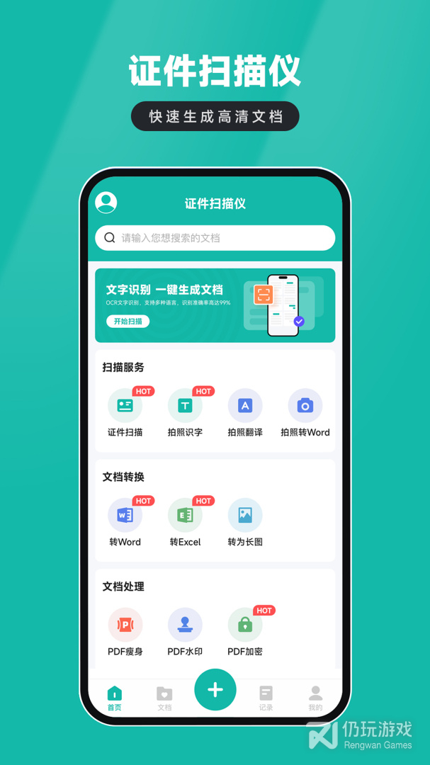 证件扫描仪是一款能够批量扫描文档、文字识别、Excel表格识别、身份证、护照、书本、报纸、名片、PDF、手稿、图片转文字识别和拍照翻译的OCR全能扫描手机软件,同时也是您的全能扫描王。