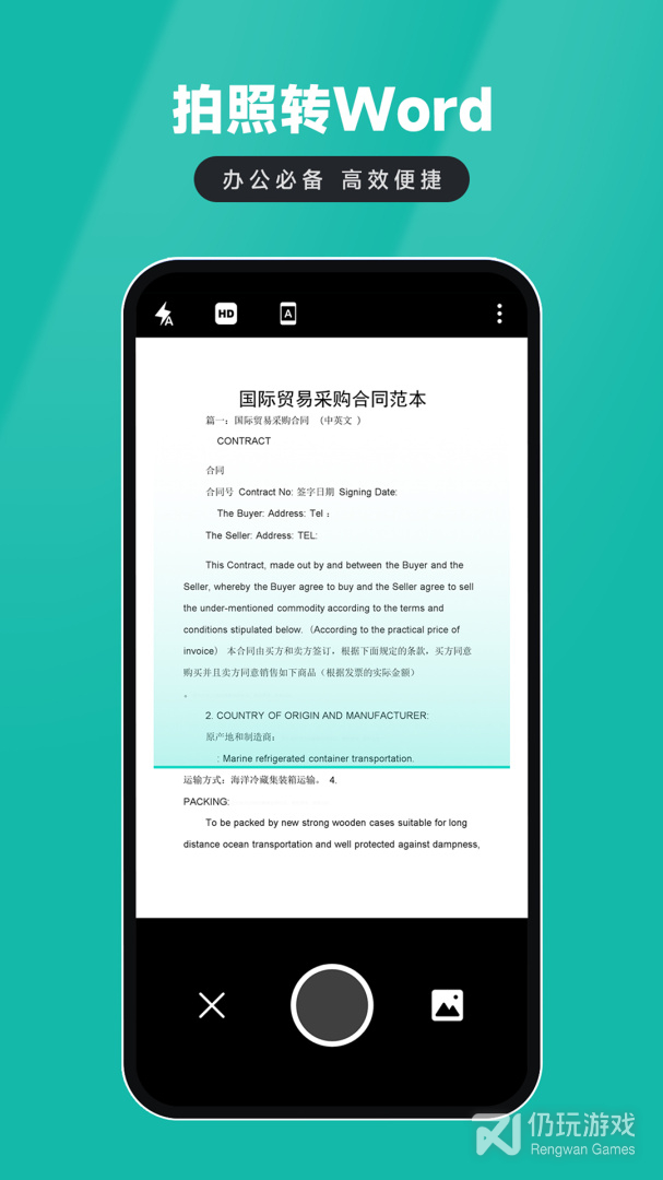 把纸张文件扫描成图片文档存于手机中,用户可对扫描的图片进行裁剪、修图等处理;
