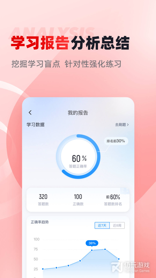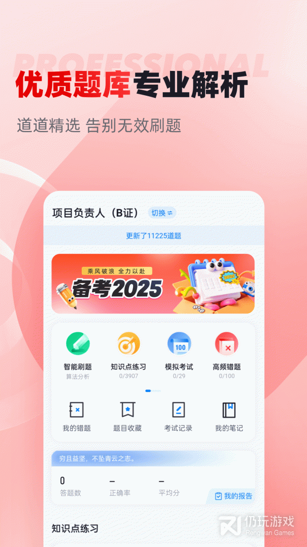 1、每日一练:每天为用户提供一套练习试卷,供用户练习从而达到熟练题库的目的