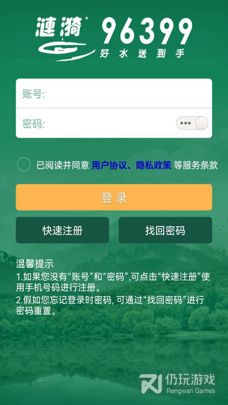 1、下载安装涟漪饮用水,然后注册或登录您的账号。