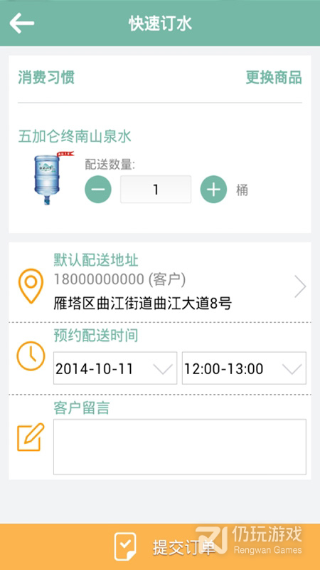 涟漪饮用水APP是针对手机端实现对桶装水和其它生活用品的订购
