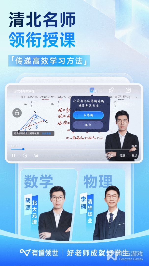 有道领世APP,以高中完整学习知识体系为框架,