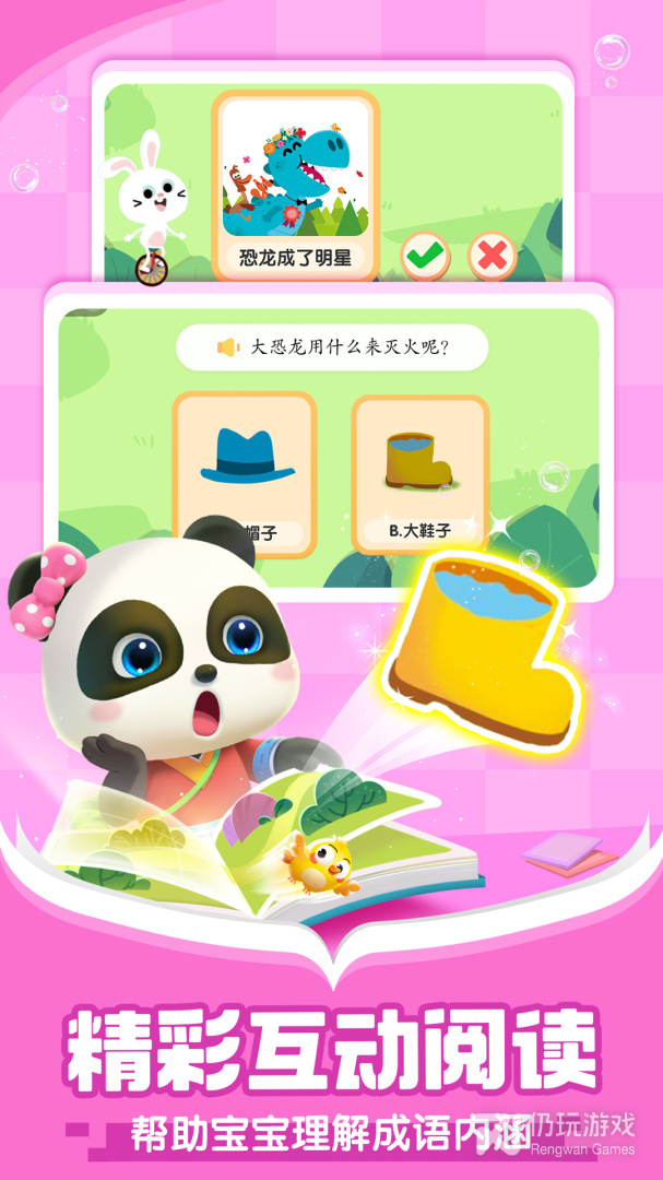 为了强化宝宝的理解力,【宝宝巴士阅读】设置了与每本绘本相关的选择题。让宝宝对绘本内容进行思考,选择正确答案,从而提升阅读理解力。