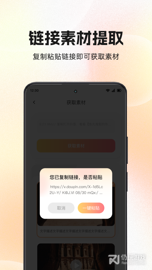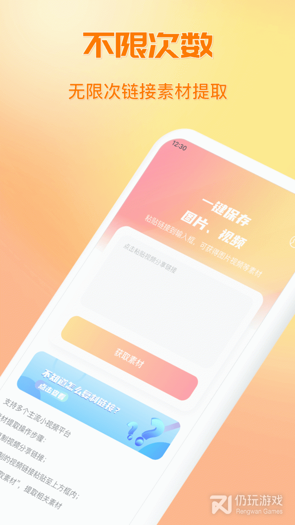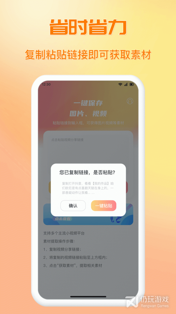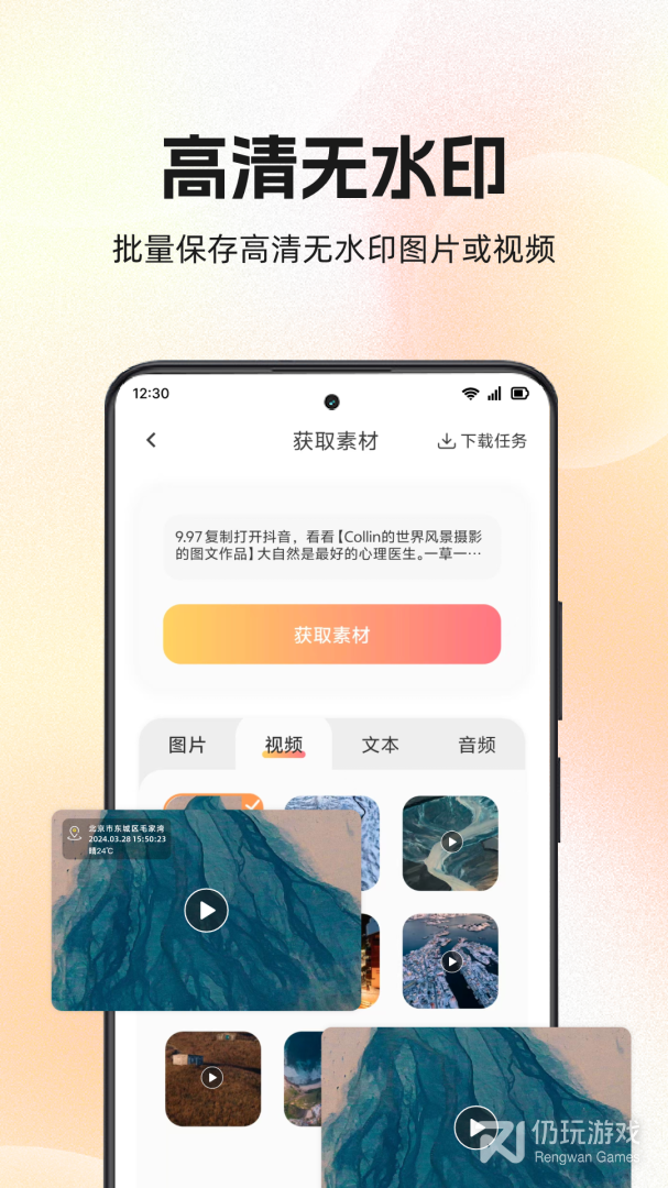 1、即可获取链接中的高清图片、视频和文案素材;便捷的直接保存到手机里