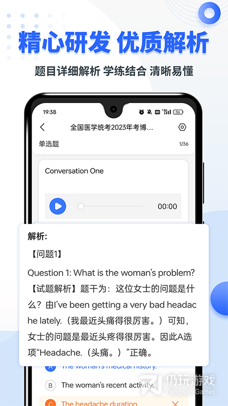 2、你还在为学不好英语而烦恼么?那你还不来下载考博英语题库在这款软件中你不仅能体验到大数据深度分析服务,更可以让你在这款软件中享受到多维度精准量化学习方式,在手机上就能直接学英语,走到哪里都能学习英语,让你英语成绩突发猛进!不要再等了