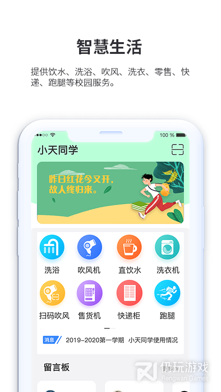 3、小天同学下载,一款专为高校生打造的一站式生活服务平台,来小天同学随时随地可以预约洗浴吹风和洗衣机等项目,更加方便快捷,有需要就来下载