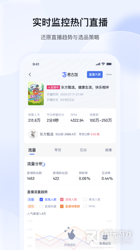 实时还原直播间流量趋势、带货趋势