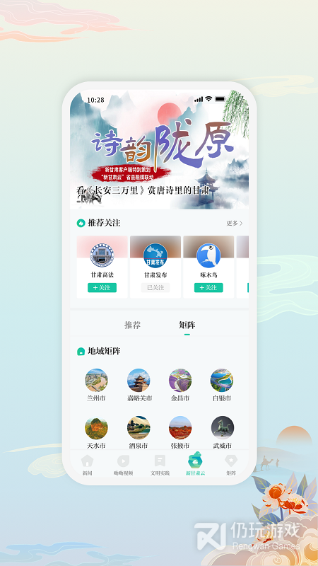 1、新甘肃是专为甘肃人制作的新闻媒体平台,平台拥有读报、首页、甘肃号、陇、县融媒、音视频等功能,可以帮助用户更好的了解甘肃及天下事