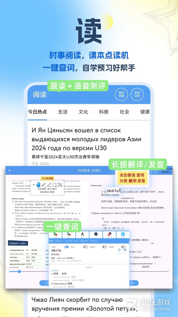 一款查俄语单词的APP,并支持背单词、查询历史记录、生词本、中俄人名转换等等功能。包含了20W的本地词库,可以背俄语考研词汇、大学俄语四六级词汇、专四专八词汇等。