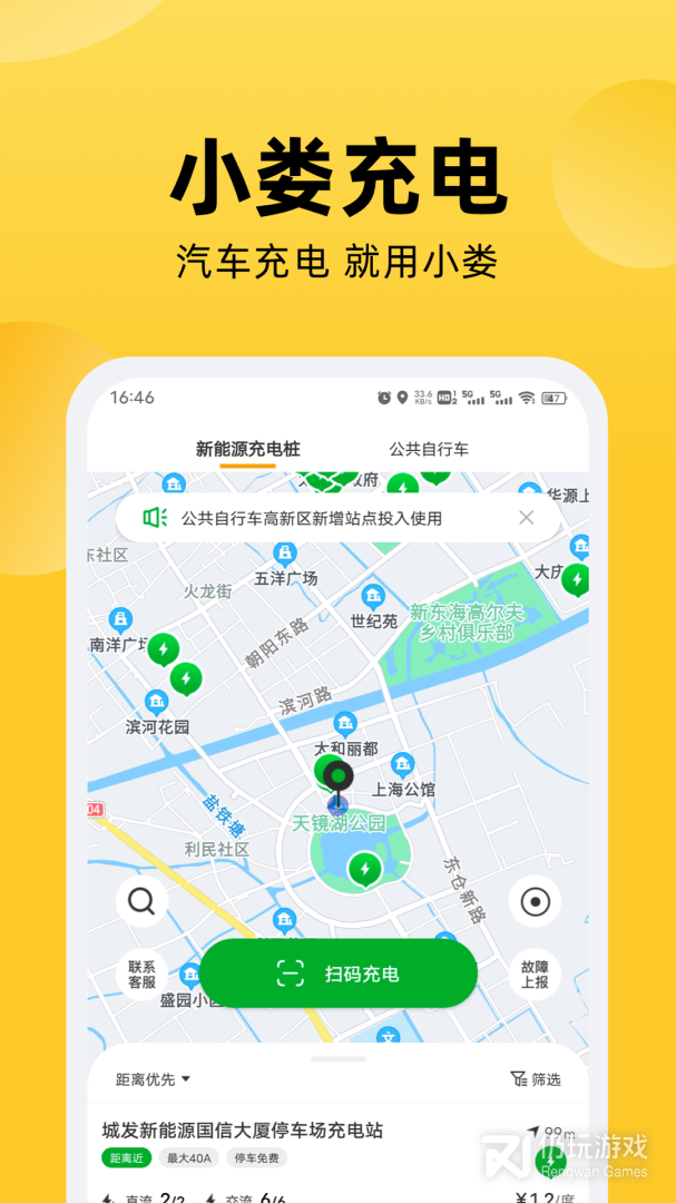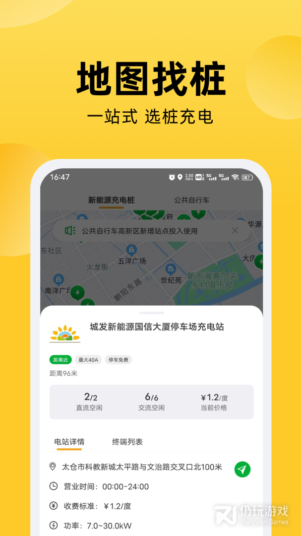 2、用户可以直接使用就可以帮助用户根据地图显示最新的一些充电桩,让用户在电动车,新能源汽车等等没电的时候可以更好的找到周围的充电桩,十分好用,不容错过