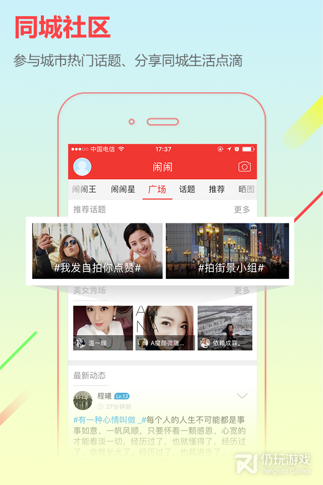 参与城市热门话题、加入兴趣圈子分享同城生活点滴