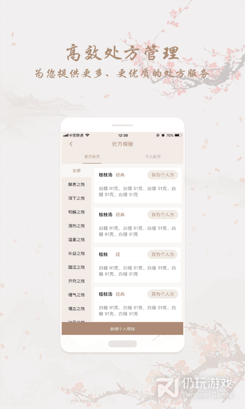 1、直观界面、多角度维护,病例、诊断、调理方案一体化在线展示;剂型多样,历史经典药方模板一手掌握,剂量价格一目了然