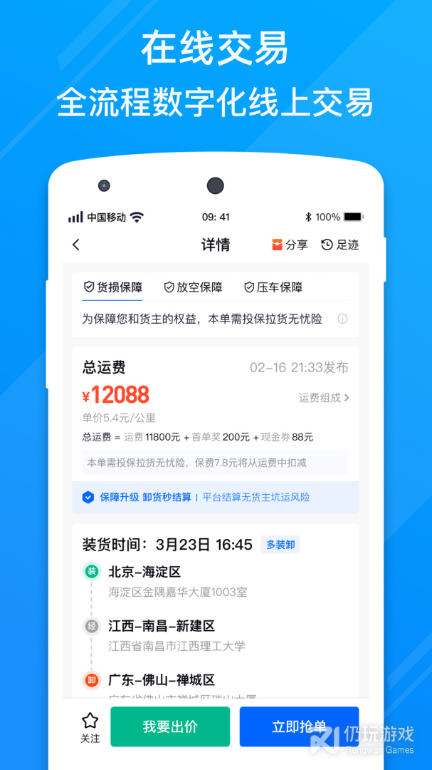 经纪人竞争报价,价格随时刷新,运输费用降低10%-40%