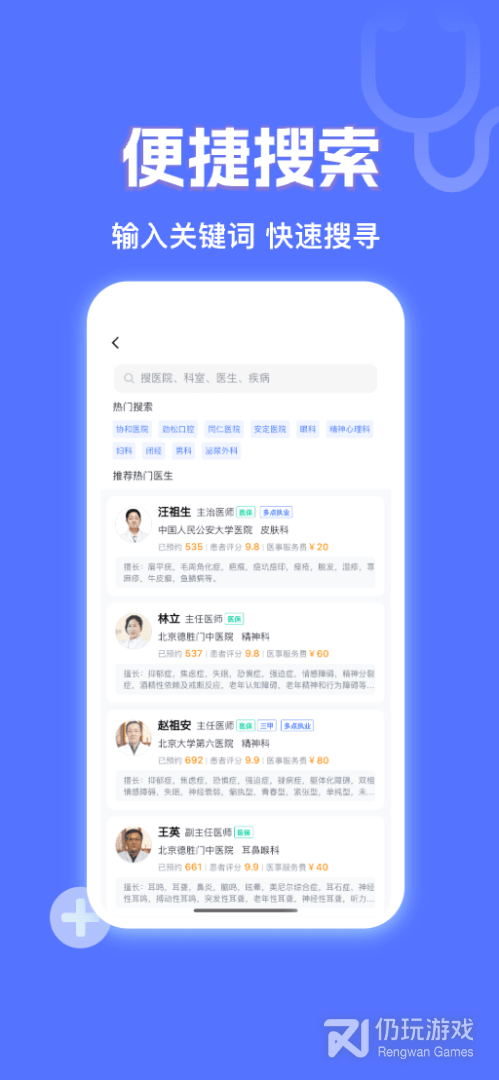 1、为用户提供更多预约选项,提供各种真实评估,让用户更好地了解医生和医院。