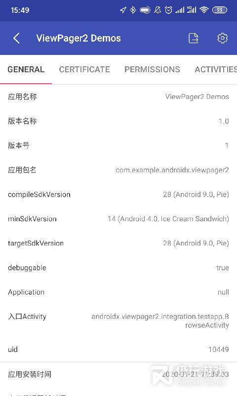 9、查看已安装应用信息,显示4大组件列表以及详细信息、应用权限相关信息、签名信息以及大量基础信息