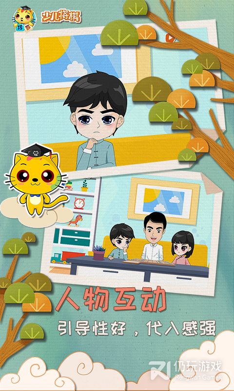 1、角色互动 动画授课:教学内容采用人物互动方式来展开,生活化的对话结合动画的表达形式,亲切自然,使得抽象枯燥的知识润物细无声的被孩子不知不觉就接受和了解,让孩子主动思考的同时又对后面的学习充满好奇,时刻保证孩子的学习兴趣