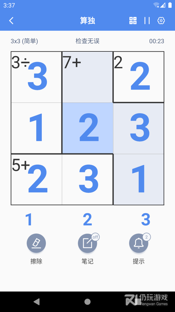 1、算独也称为明方格、KenKen、Newdoku、Mathdoku、Kendoku、贤贤,很巧妙的将数独与数学运算进行结合,非常考验用户的逻辑思维能力,并且还可以训练大家的数学运算能力,好玩又有趣,也能让孩子从小就训练自己的数学能力