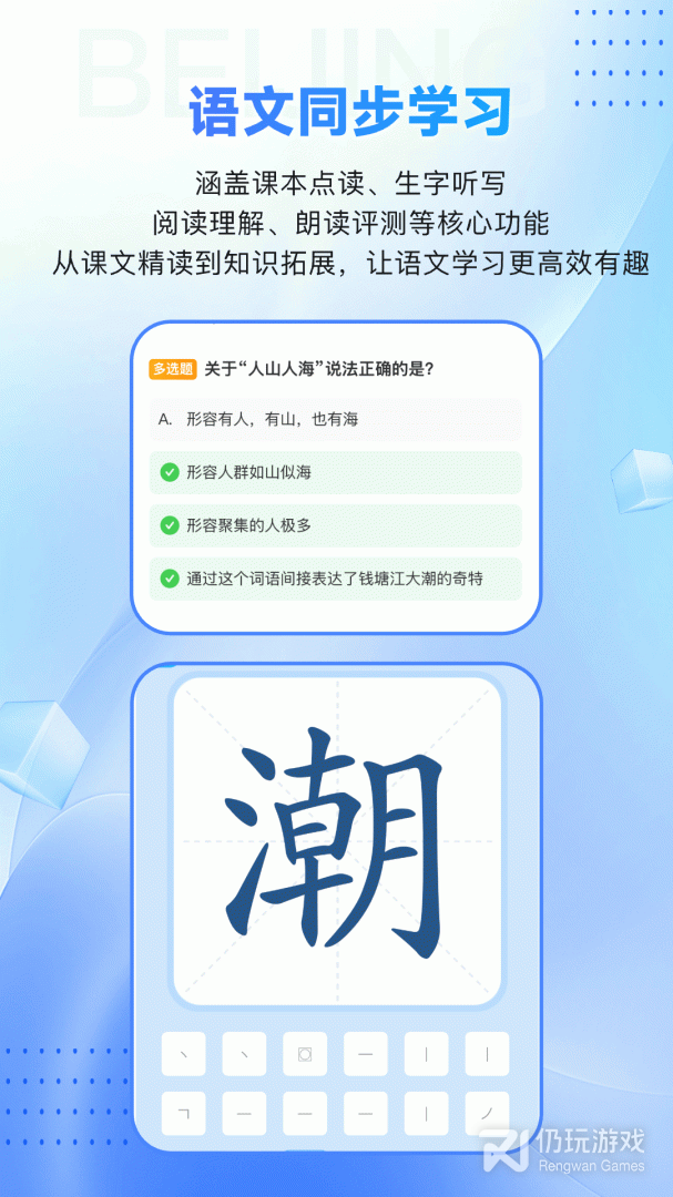 针对目前小学生学习英语不敢开口、家长课后辅导难等问题,结合同步教材,从听、说、读、写四个方面,逐个击破学习难点,为孩子们营造一个沉浸式的英语学习空间!